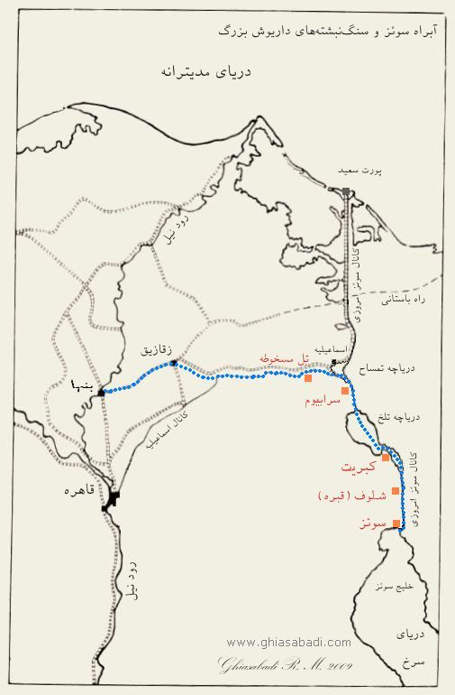 مسیر کانال داریوش ( سوئز ) و سنگ نبشته های داریوش بزرگ مربوط به مراحل ساخت در مصر